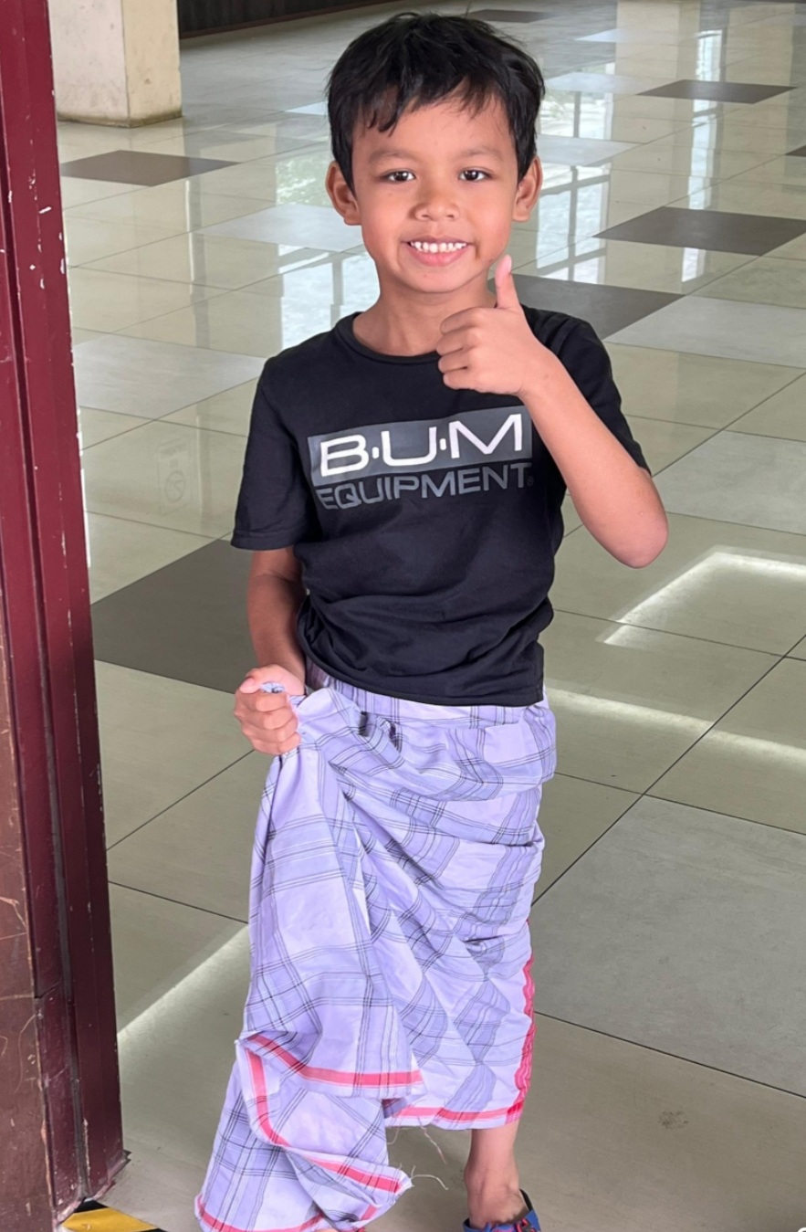 Manakala Syaqeef Harraz Syafrie yang ditemui turut bersemangat untuk berkhatan selepas dimandikan beramai-ramai oleh pasukan bomba sukarela. - KitaReporters
