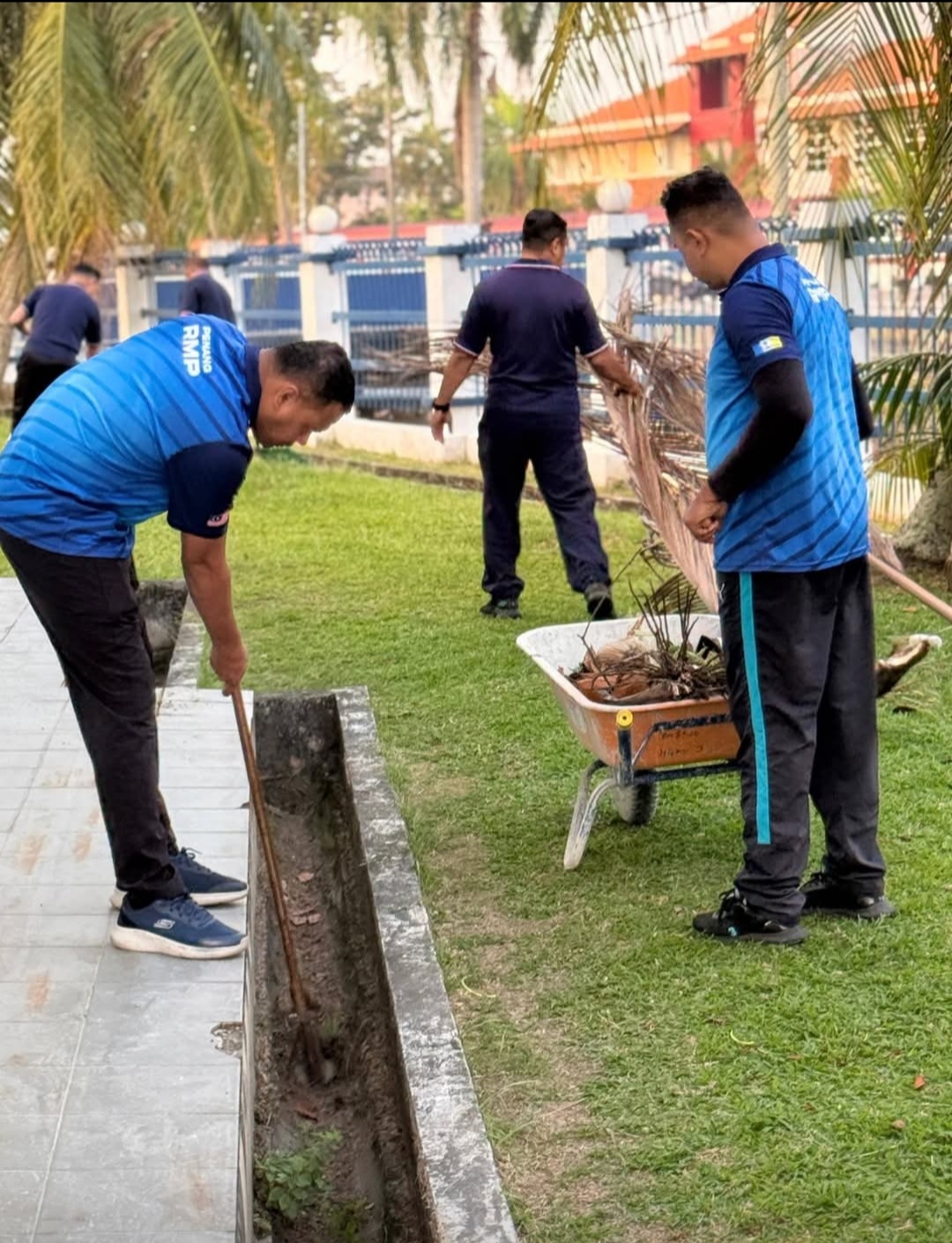 Seramai 69 warga PDRM Ibu Pejabat Polis Daerah (IPD) Seberang Perai Utara (SPU) mengambil inisiatif mengadakan gotong-royong membersihkan kawasan Surau Nurul Aman IPD SPU serta kawasan perumahan polis supaya ia lebih kelihatan ceria dan lestari.