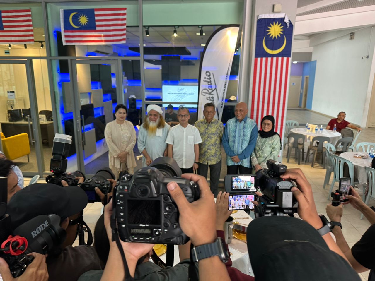 Ahmad Fahmi Mohamed Fadzil (tiga dari kiri) merakamkan kenangan bersama tetamu jemputan selepas merasmikan Peduli Radio di Putrajaya Sentral, Presint 7, Putrajaya.
