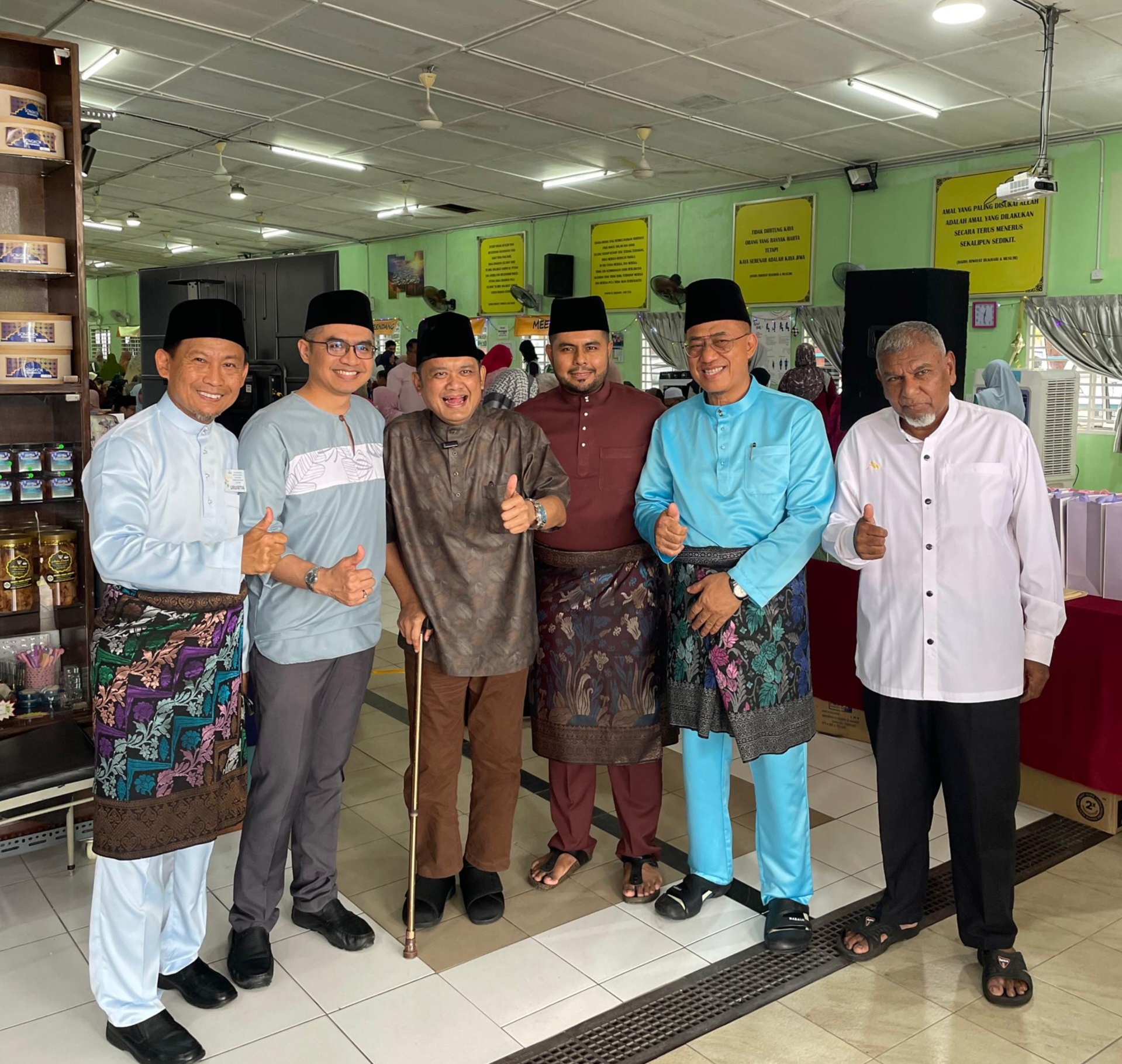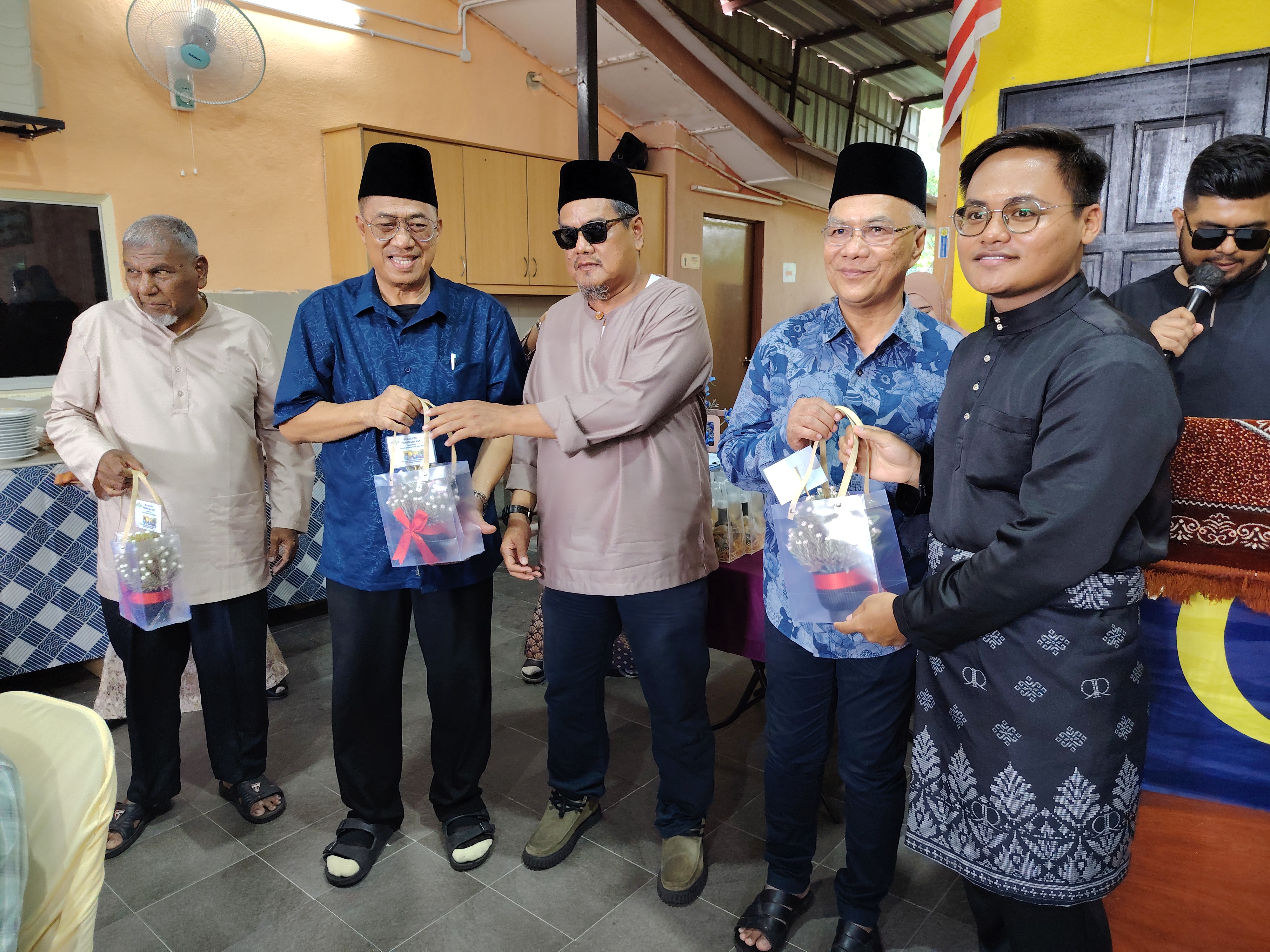 Mohd Sany Hamzan (tiga dari kiri) disantuni Mohiadin Bahado (kanan), Azman Rasman (dua dari kanan), Muhammad Syafiq Mohiadin (tiga dari kanan), dan Ustaz Alias Ahmad (kiri).