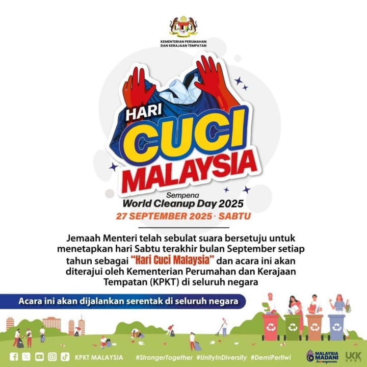 Meriah sekali Program Hari Cuci Malaysia 2025. Pelbagai agensi menyertai program berkenaan yang bertujuan memupuk kesedaran awam mengenai kepentingan menjaga kebersihan persekitaran dan alam sekitar serta menerapkan nilai tanggungjawab sosial.