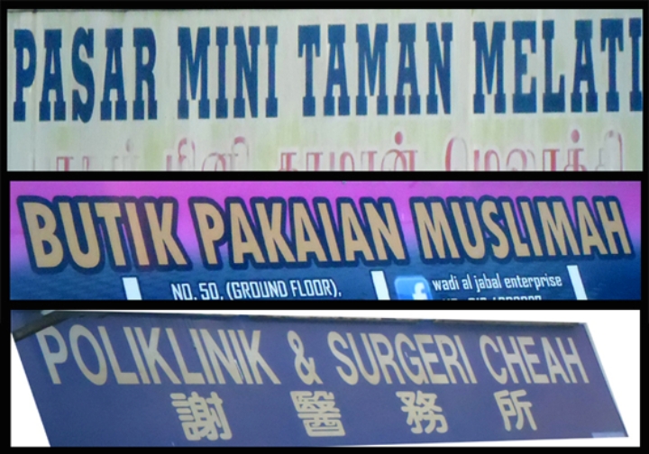Premis seperti gedung perniagaan, kedai, pejabat, industri dan lain-lain wajar menggunakan papan tanda dalam Bahasa Melayu. Tidak perlu bermacam-macam tulisan sehingga tiada keseragaman.