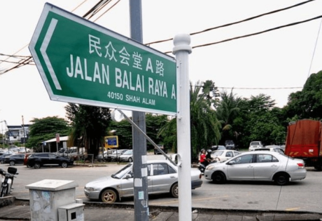 Papan tanda jalan yang menimbulkan kontroversi suatu ketika dahulu kerana turut menggunakan bahasa lain selain bahasa Melayu.