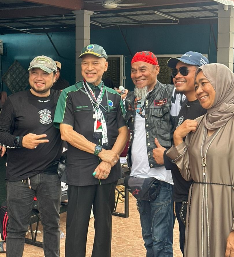 Nadzim Johan (dua dari kiri), Anita Yusop (kanan) bergambar bersama-sama bikers Iron Heart MC.