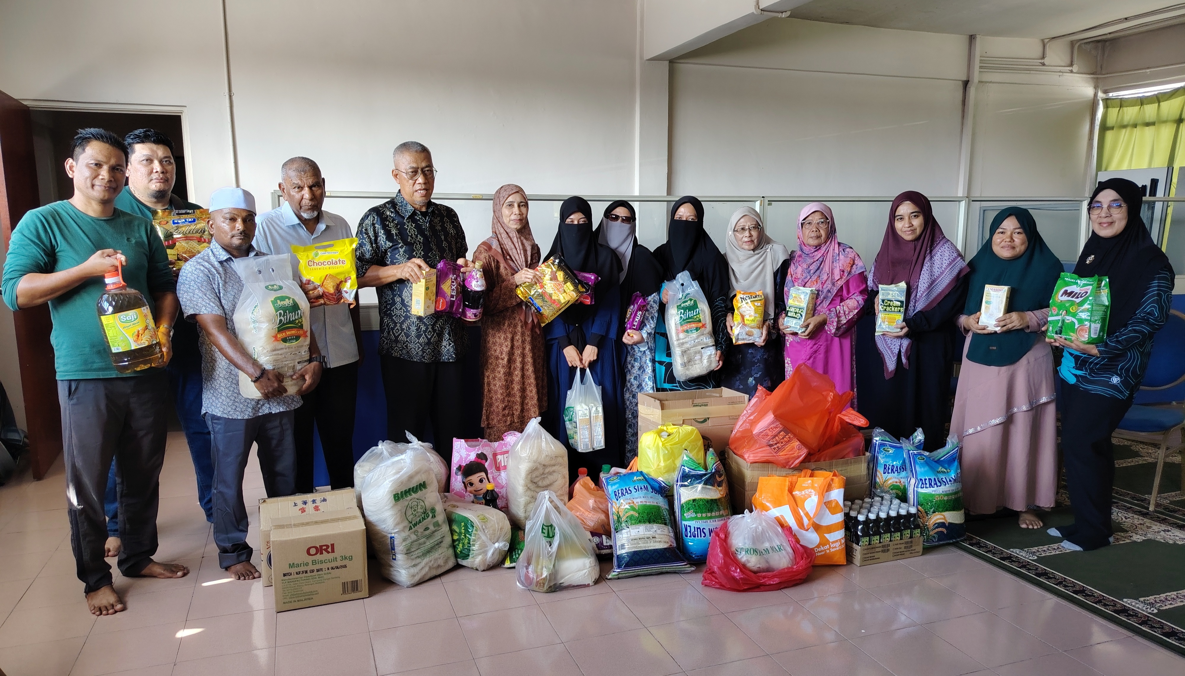 Antara barangan keperluan asas yang berjaya dikumpul hasil sumbangan pelbagai pihak itu termasuklah beras, minyak masak, serbuk teh, kopi, milo, sos tomato, sos cili, kicap, sabun pencuci, bihun, susu pekat, biskut, telur, daging ayam sejuk beku dan sebagainya.
