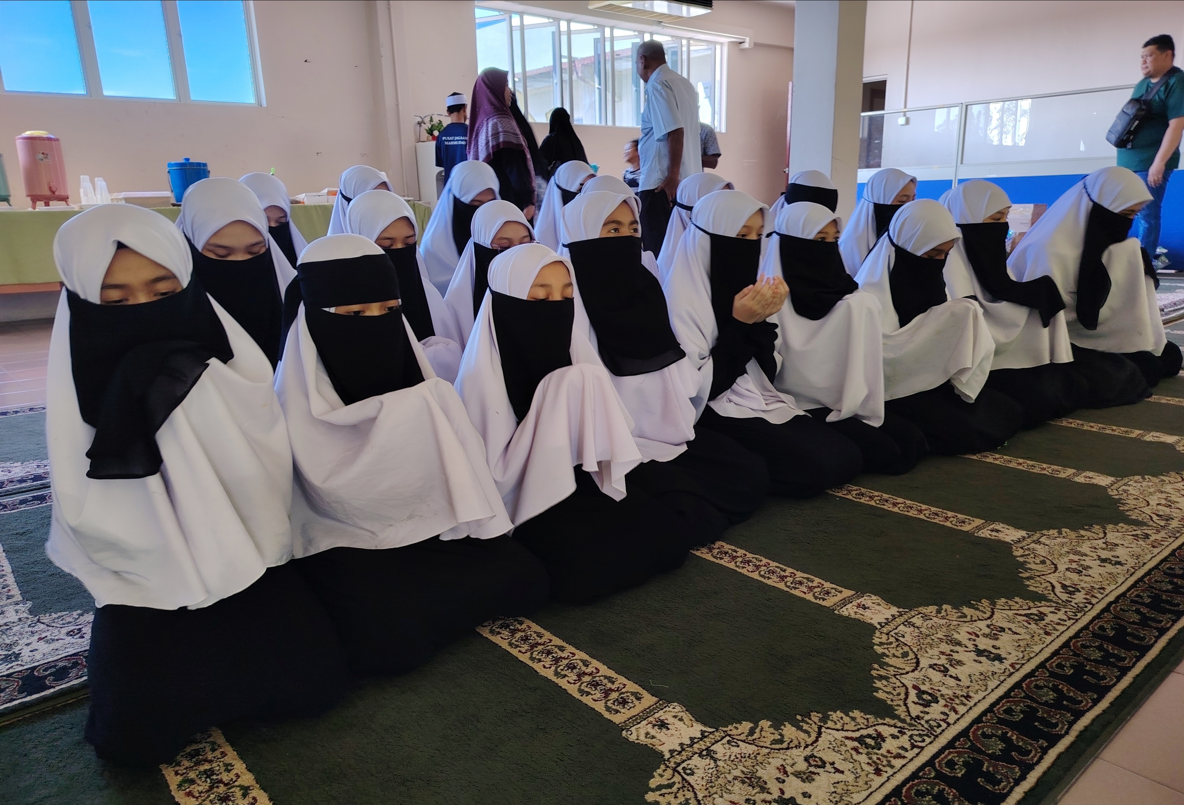 Pelajar maahad tahfiz berselawat sambil menyambut kedatangan wakil NGO dan kakitangan pusat jagaan untuk menyerahkan sumbangan.