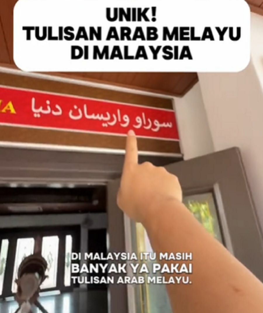 “Di Malaysia itu masih banyak yang pakai tulisan Arab Melayu. Ini khususnya Arab tapi bukan bahasa Arab gitu. Tulisan Arab Melayu istilahnya,” katanya dalam video tersebut.
