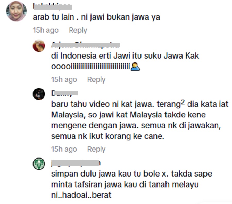 “Arab tu lain, ini jawi,” tegur salah seorang netizen.