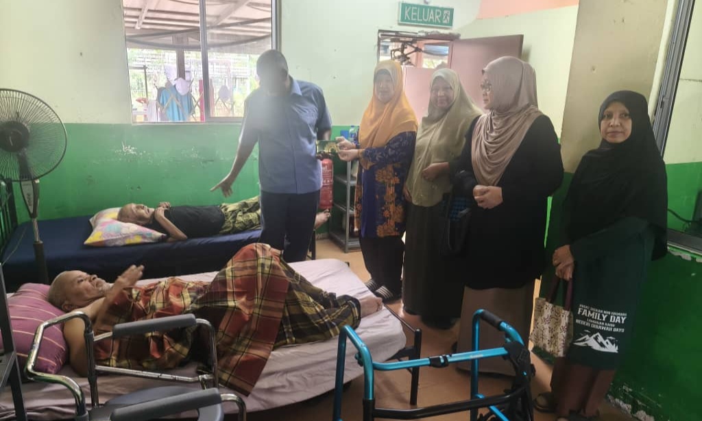 Musalmah bersama-sama rakan diiringi Mohiadin melihat sendiri bilik yang menempatkan warga emas termasuk mereka yang uzur terlantar di atas katil bagi mendapatkan gambaran sebenar mengenai pusat jagaan berkenaan.