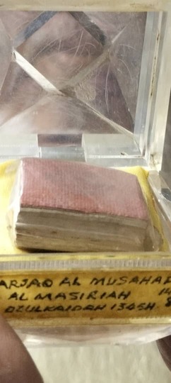 "Al-Quran kecil ini hampir tidak kelihatan ketika diletakkan di telapak tangan manusia dewasa dan hanya boleh dibaca dengan menggunakan kaca kanta cermin atau kaca mata berkapisiti tinggi .