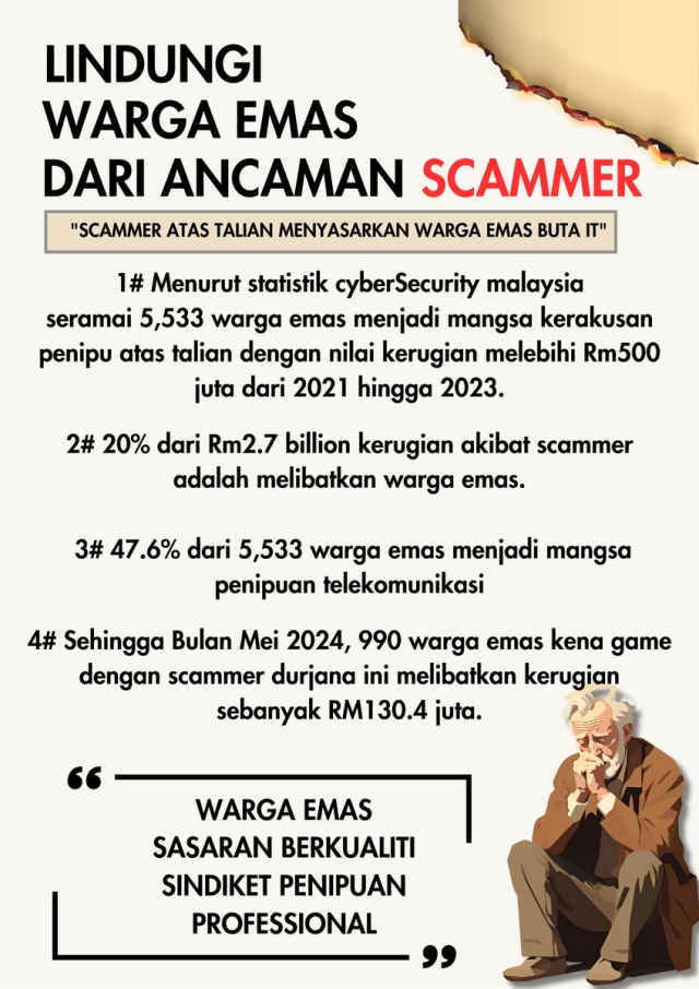 Jadi, ini adalah tanggungjawab anak-anak, ahli keluarga dan masyarakat untuk lindungi warga emas. Bantu mereka. Jangan biar mereka hadapi dunia digital sendirian.