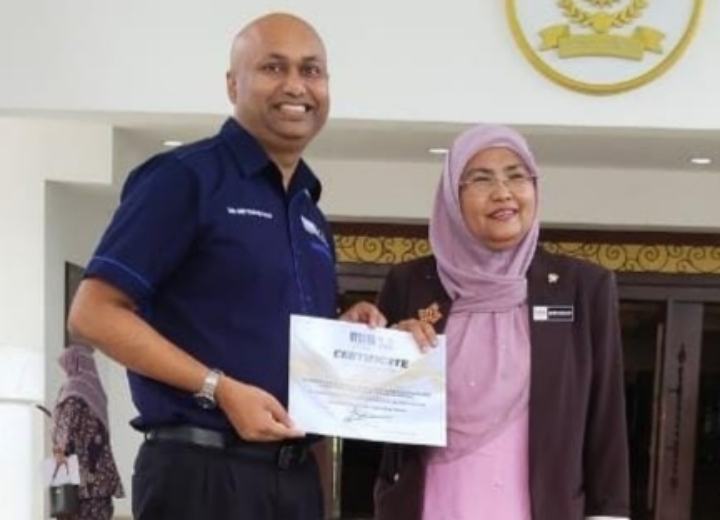 Dr. Nor'Aishah Abu Bakar menyampai sijil penghargaan kepada Dr. Sritharan Rao.