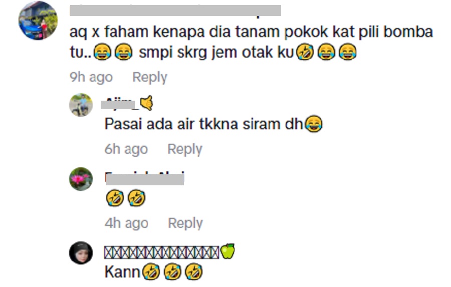 “Aku tak faham kenapa dia tanam pokok kat pili bomba tu. Sampai sekarang jem otak aku," tulis salah seorang netizen.