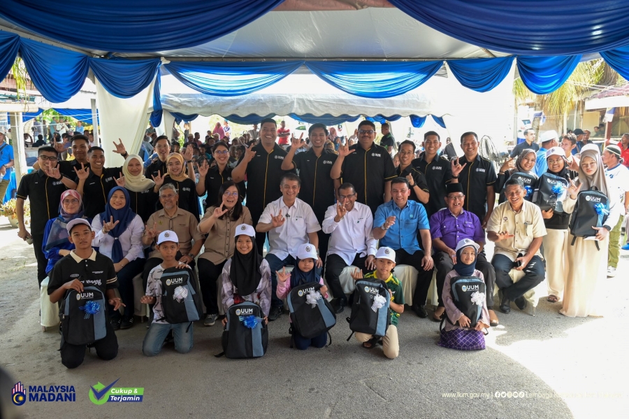 Sumbangan tersebut merangkumi Beg Sekolah UUM, Topi UUM, Botol Air UUM, alat tulis serta wang tunai bernilai RM50 bagi setiap pelajar.