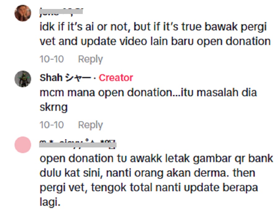 Namun ada juga yang mula meragui niat pemilik akaun tersebut, memandangkan tiada bukti jelas menunjukkan kucing itu benar-benar wujud atau dibawa ke klinik.