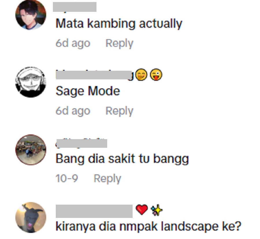 “Kalau lighting dari tepi, pupil boleh nampak mendatar. Tapi kalau dia guna mode ‘beauty’ TikTok pun boleh buat nampak macam tu,” kata netizen lain.