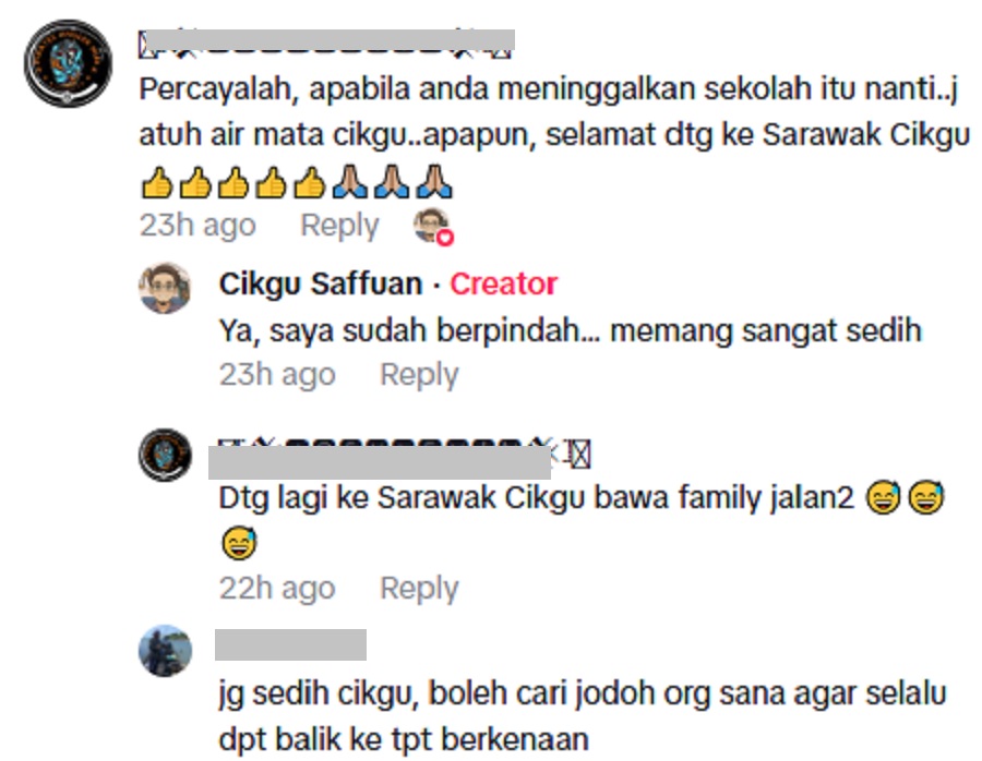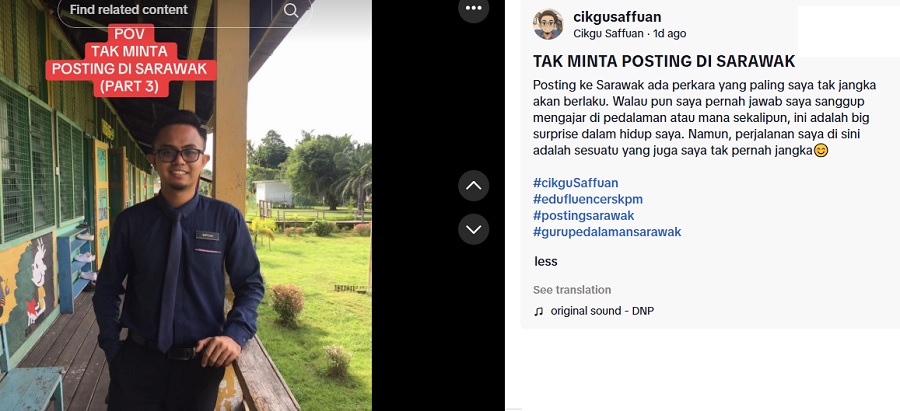 Melalui satu hantaran dalam TikTok miliknya, @cikgusaffuan, beliau mengakui pada mulanya terkejut dan agak berat hati apabila mendapat tahu akan berkhidmat jauh dari tanah kelahiran. Namun, pengalaman itu akhirnya menjadi antara bab paling berharga dalam hidupnya.