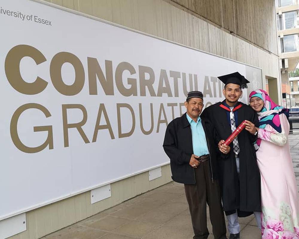 Akhirnya, selepas berjimat cermat, Muhammad Afiq mampu mengumpul £2,000 (RM10,304) bagi membolehkan ibu dan bapanya ke UK menyaksikan majlis graduasi di University of Essex.