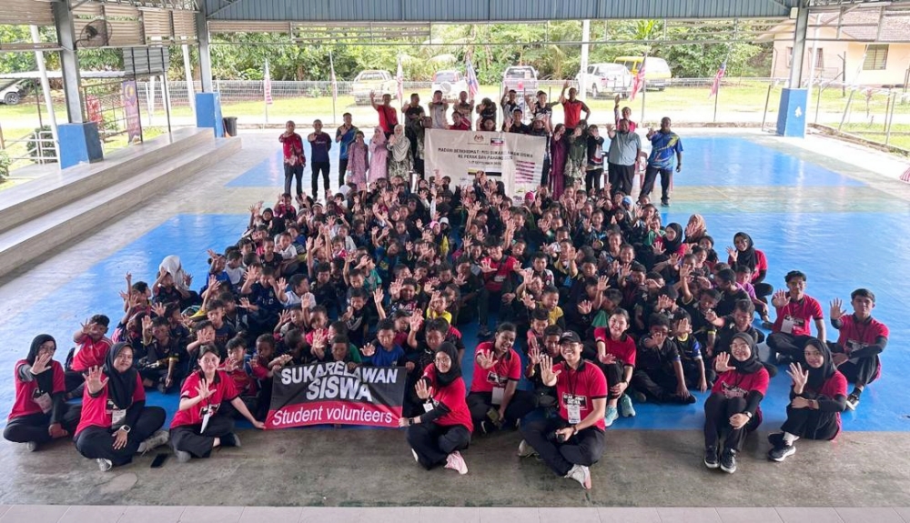 Sukarelawan siswa yang terlibat dalam program khidmat masyarakat sebelum bertolak ke Perak dan Pahang pada 4 September 2025.