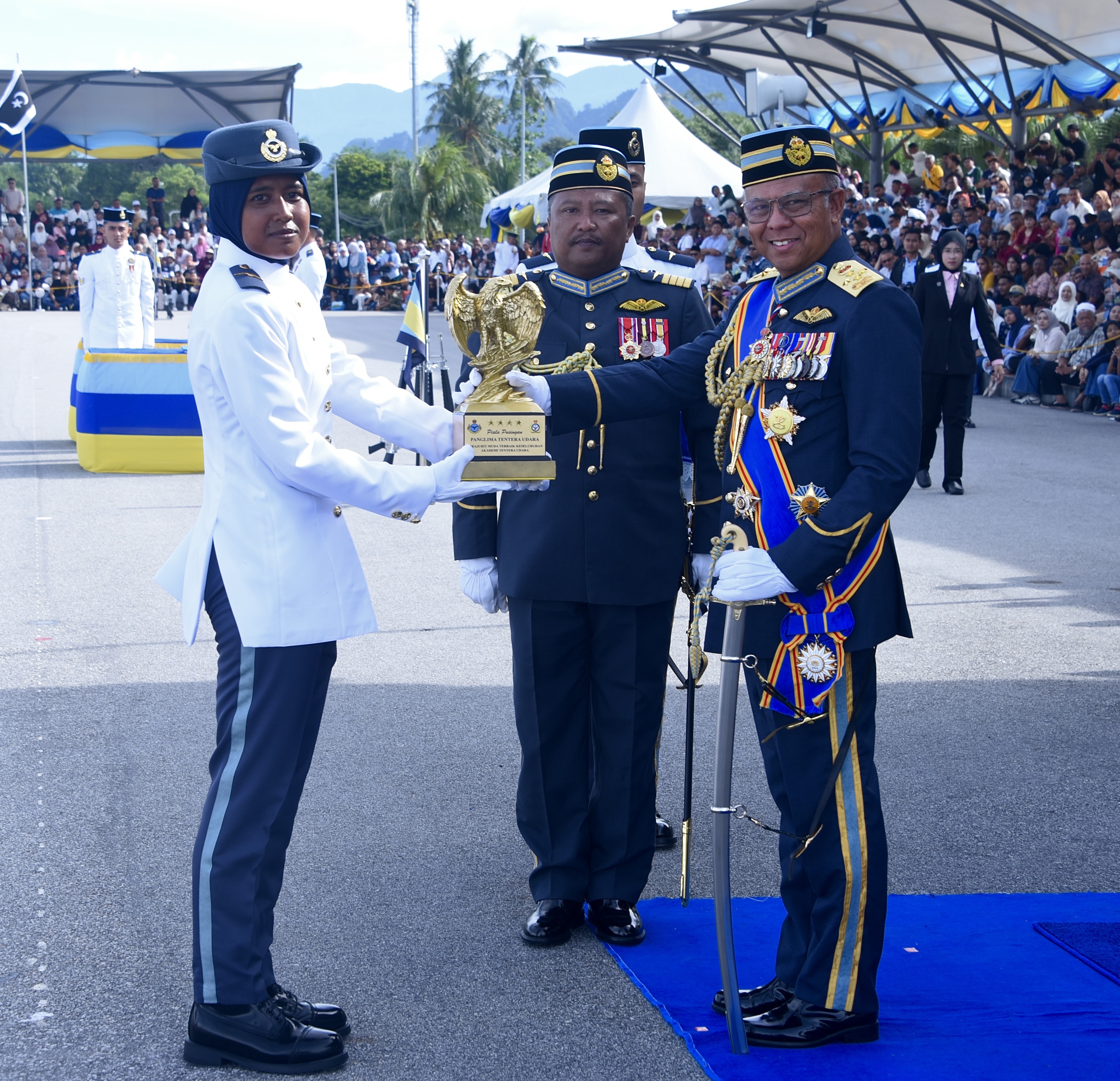 Kedua-dua mereka menerima piala pusingan daripada Panglima Tentera Udara, Jeneral Datuk Seri Muhamad Norazlan Aris.