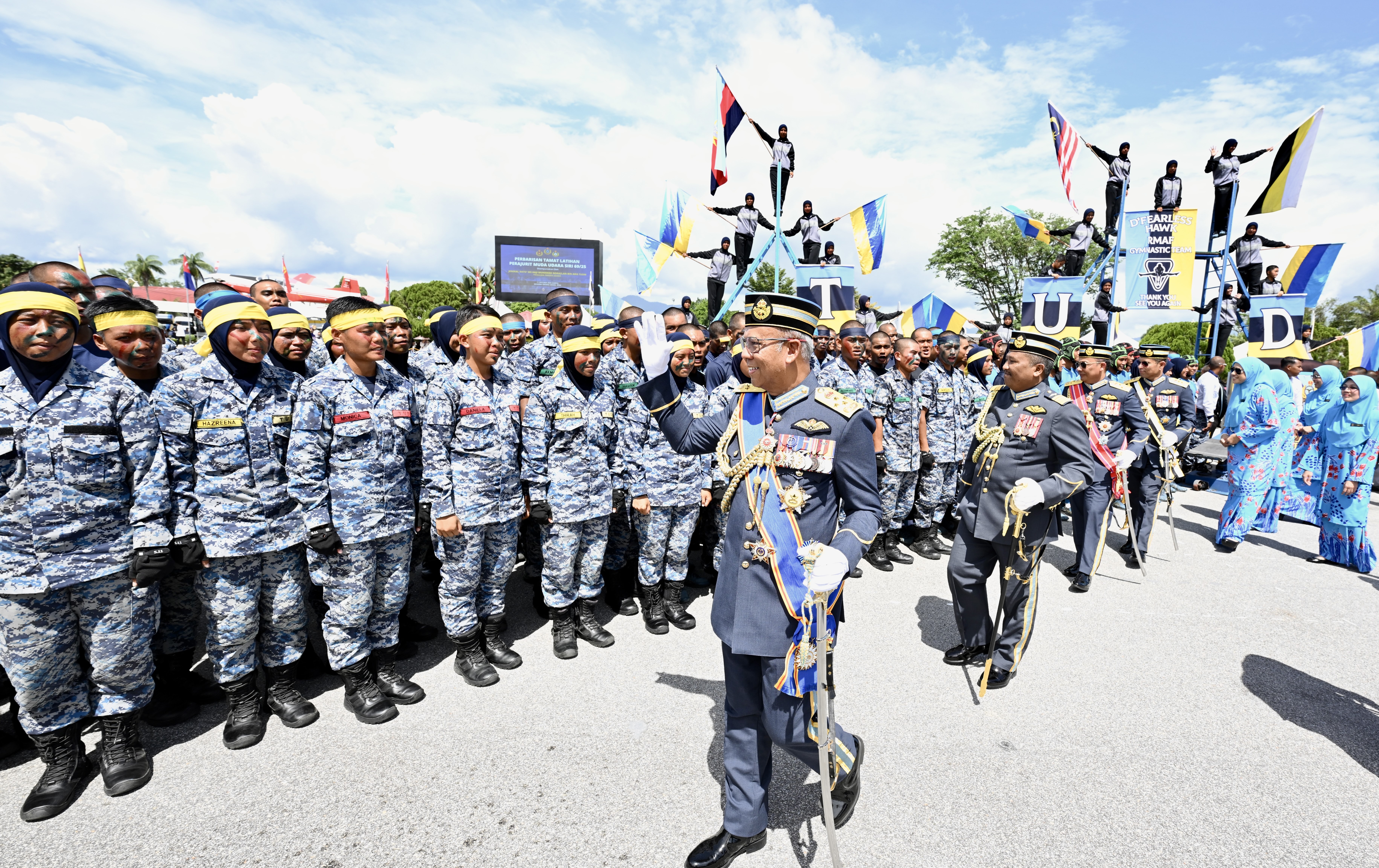 Muhamad Nurazlan Aris melambai tangan kepada anggota TUDM ketika hadir di Akademi Tentera Udara (ATU) TUDM di Ipoh, Perak pada 11 Oktober 2025.