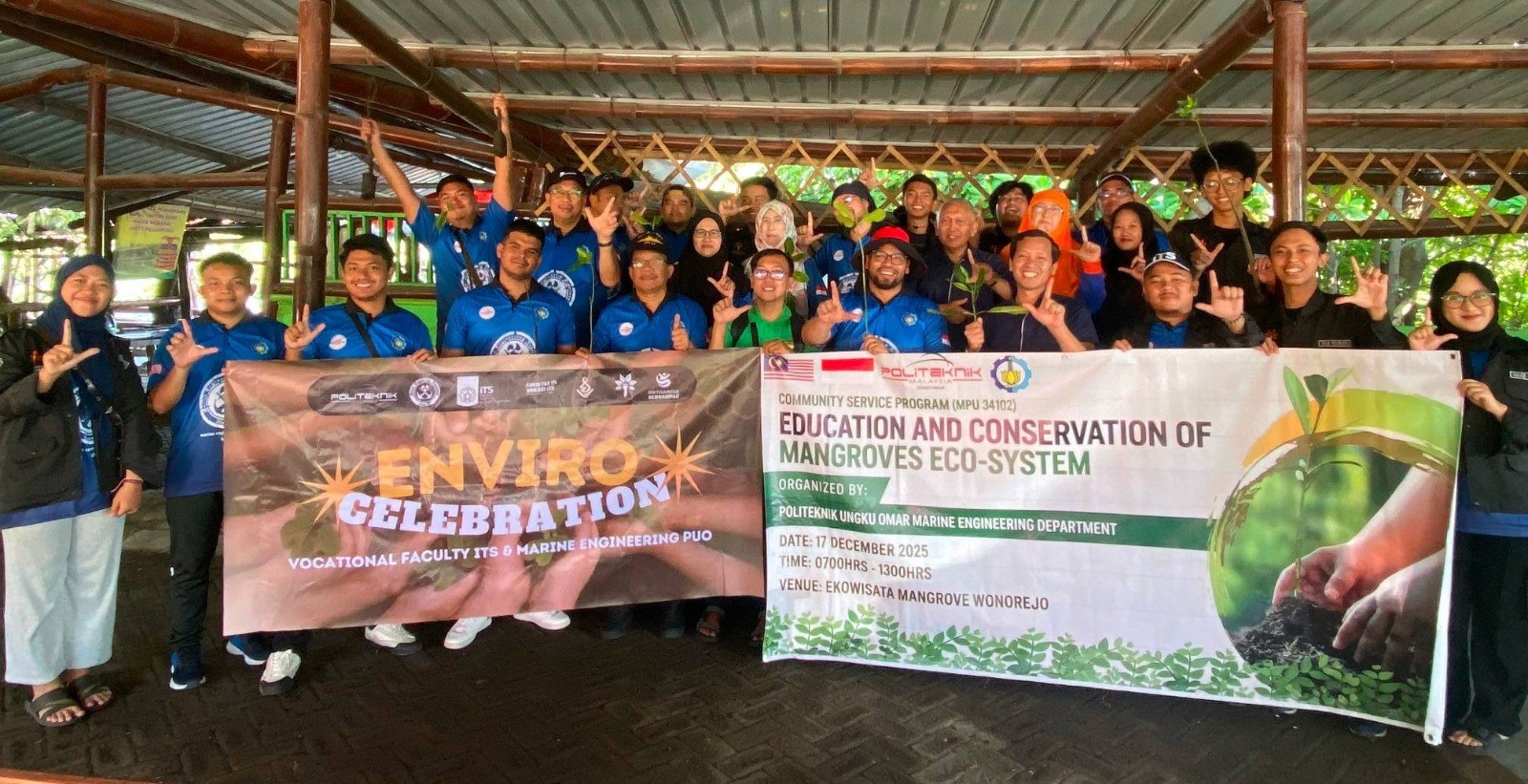 Seramai 20 pelajar dan 14 pensyarah dari Politeknik Ungku Omar (PUO) dan Fakultas Vokasi, Institut Teknologi Sepuluh Nopember (ITS), Surabaya, Indonesia menyertai Program Jalinan TVET Nusantara, satu inisiatif tanggungjawab sosial korporat (CSR) yang diadakan di Ekowisata Mangrove Wonorejo, Surabaya, Indonesia pada 22 Disember 2025.