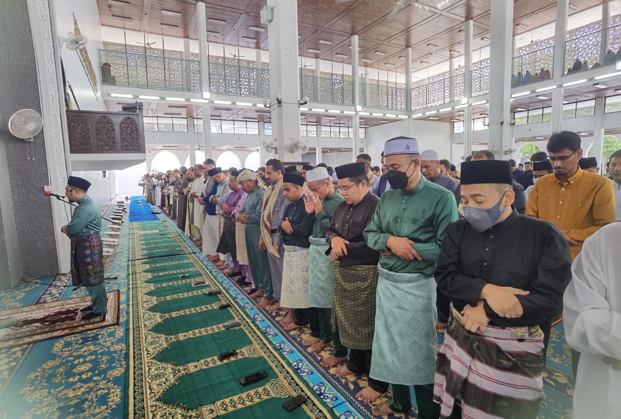 Naib Canselor Universiti Utara Malaysia (UUM), Prof Dr Mohd Fo’ad Sakdan menunaikan solat sunat Aidilfitri bersama Timbalan Naib Canselor (Hal Ehwal Pelajar dan Alumni) Prof Dr Ahmad Martadha Mohamed dan 1,000 warga kampus terdiri daripada pelajar, kakitangan dan keluarga mereka di Masjid Sultan Badlishah pagi raya, 22 April 2023..
