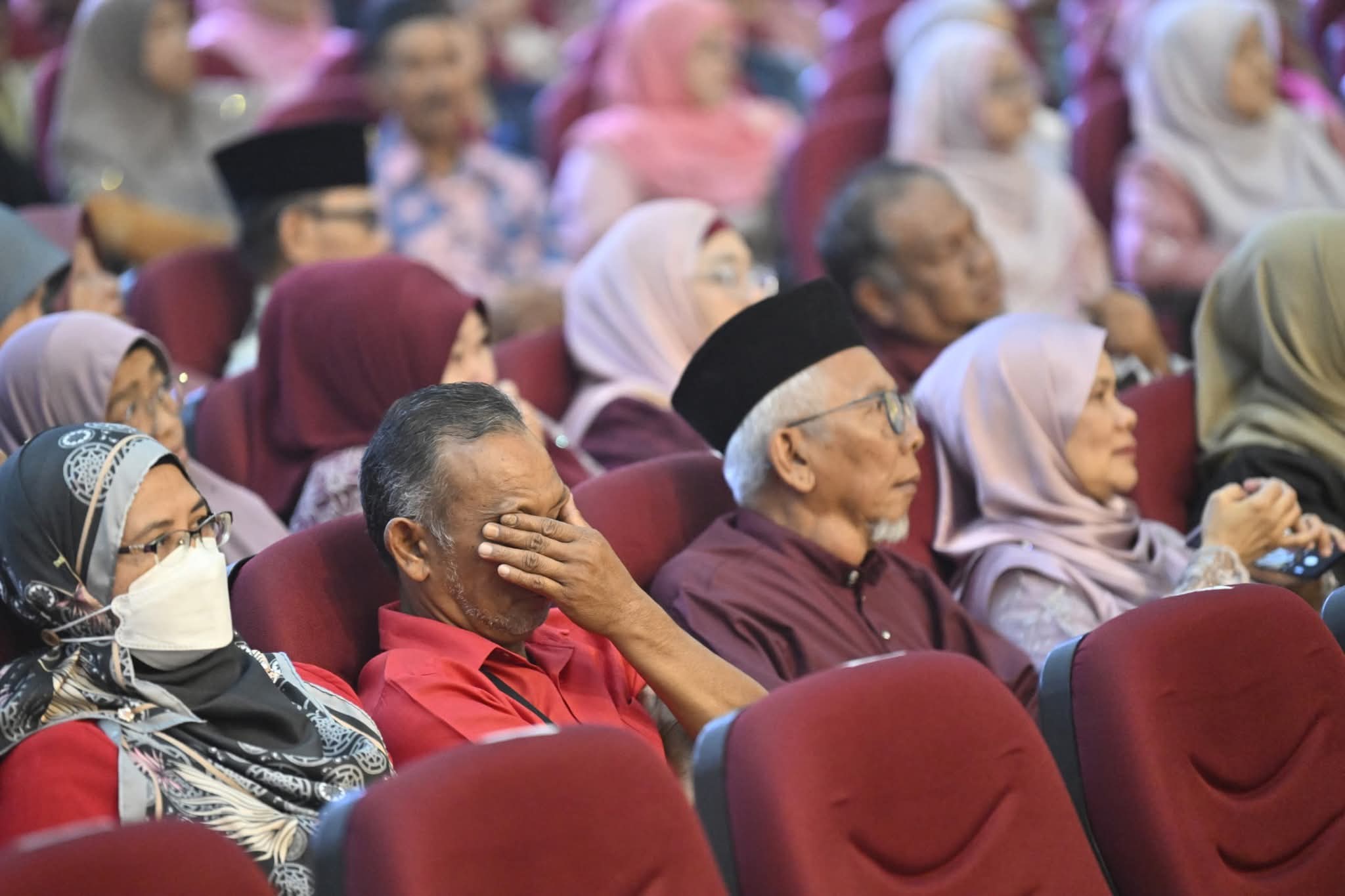 Seorang bapa mengesat mata tersentuh dengan ucapan naib canselor UPSI yang meruntun hati. - Kredit foto: FB Naib Canselor UPSI.