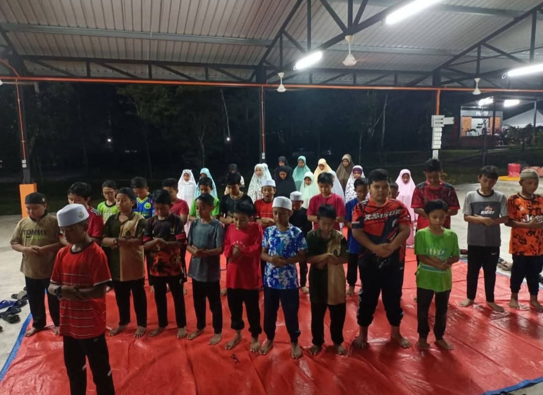 Solat berjemaah dilakakukan sepanjang perkhemahan TKRS SK Sungai Buloh di UPSI Tanjung Malim.