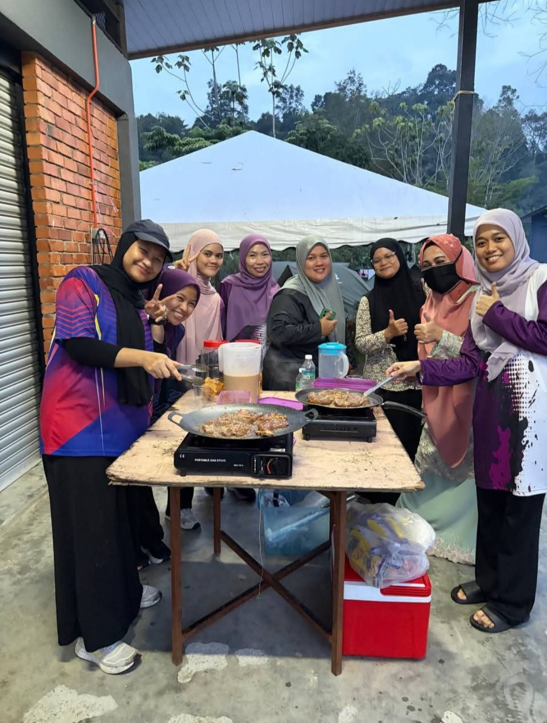 Guru pengiring menyediakan makanan untuk peserta perkhemahan TKRS SK Sungai Buloh. Tentu enak!