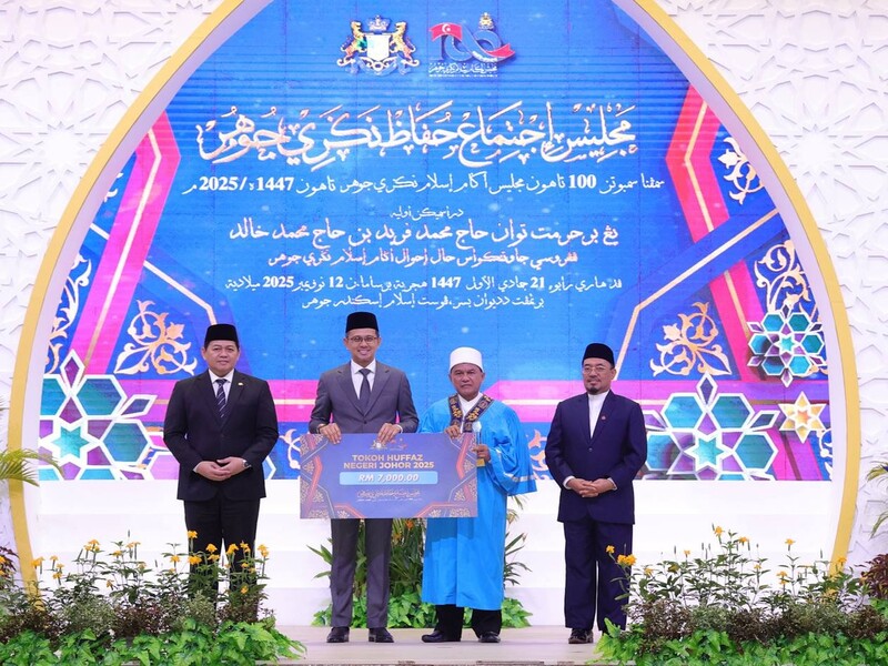 Pada majlis itu, Pengerusi Jawatankuasa Hal Ehwal Agama Islam Negeri Johor, Mohd Fared Mohd Khalid, hadir merasmikan Majlis Ijtimak Huffaz Negeri Johor 2025 sempena Sambutan 100 Tahun Majlis Agama Islam Negeri Johor (MAINJ) di Pusat Islam Iskandar Johor. - KitaReporters
