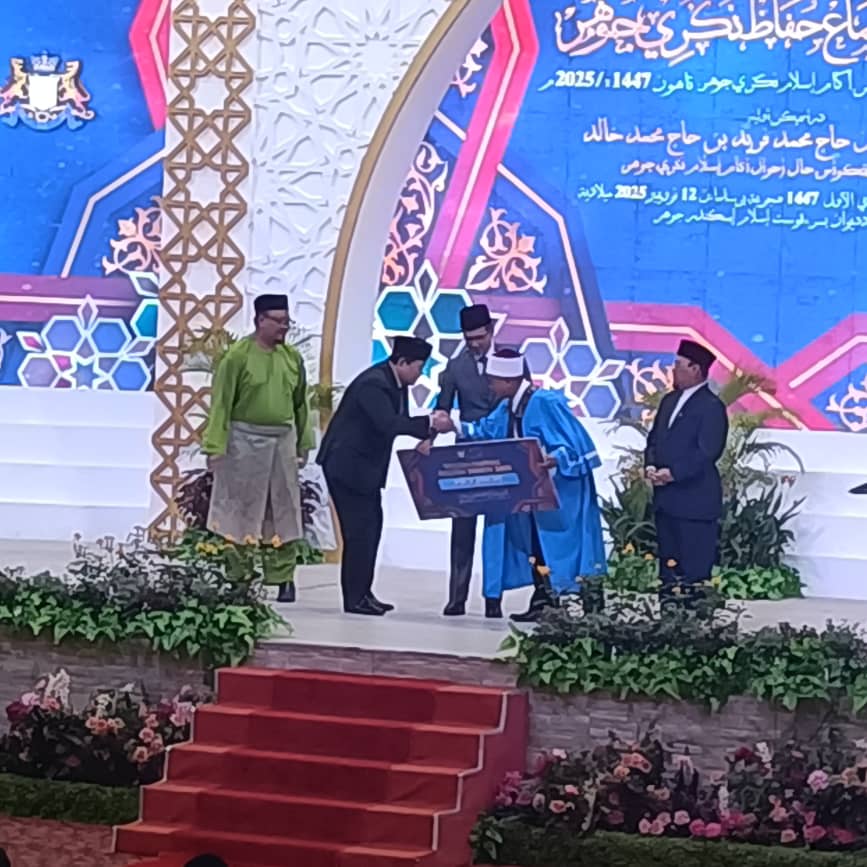 Alhamdulillah, tahniah diucapkan kepada Ismail Rosli al-Hafiz yang dipilih sebagai penerima anugerah Tokoh Huffaz Negeri Johor 2025 pada Majlis Ijtimak Huffaz Negeri Johor 2025 yang berlangsung di Pusat Islam Iskandar Johor pada 12 November 2025.