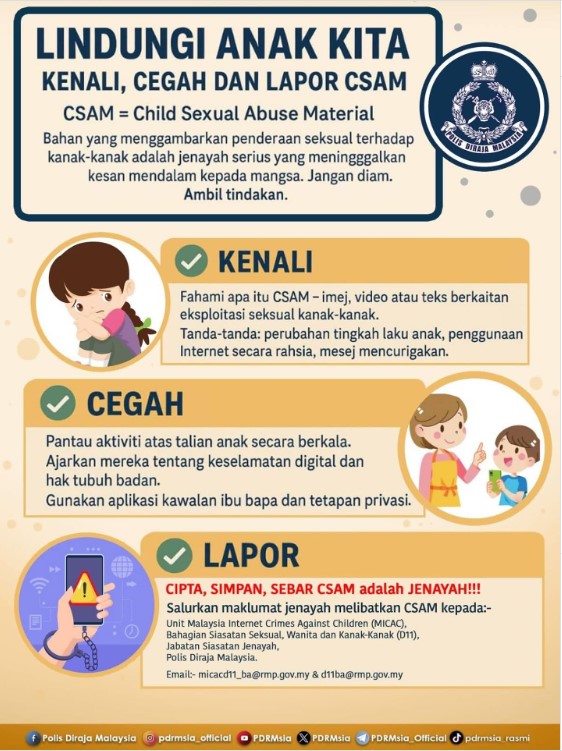 Pengenalan Child Sexual Abuse Material (Bahan Penderaan Seksual Kanak-kanak atau CSAM) merupakan salah satu inisiatif kerajaan dalam mendidik masyarakat mengenai jenayah siber yang melibatkan kanak-kanak.