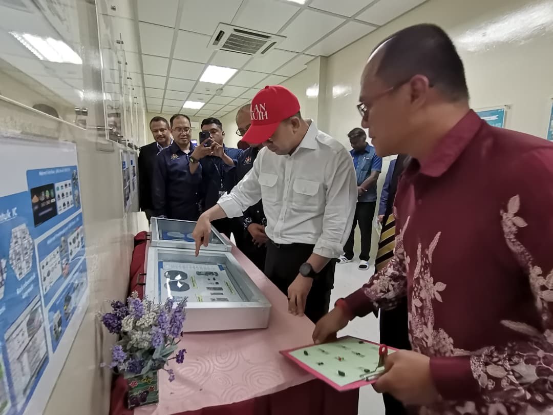Steven Sim (tengah) ketika melihat produk semikondaktor yang dipamerkan di ADTEC Kampus Taiping, Perak.