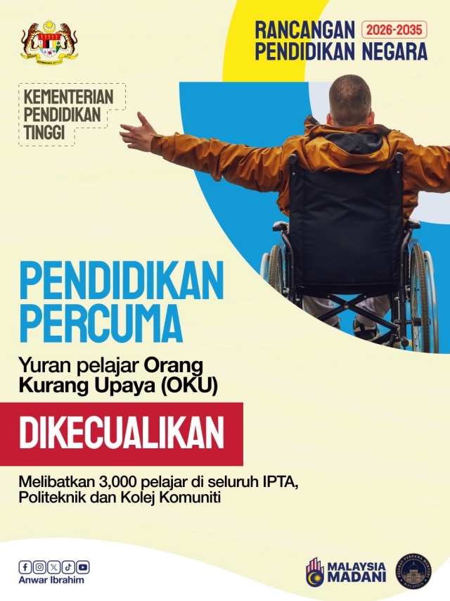 Justeru, universiti ini akan terus memperkukuh komitmen dalam memperkasa pelajar OKU sebagai aset negara selaras dengan hala tuju Rancangan Pendidikan Negara 2026–2035 demi merealisasikan pendidikan tinggi yang inklusif, berkualiti dan berimpak tinggi secara mampan. - KitaReporters/Kenyataan Media