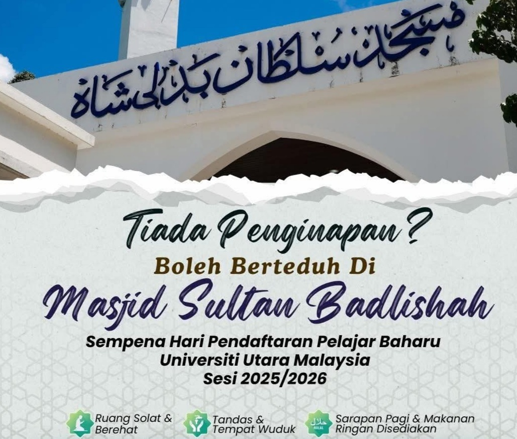 Masjid Sultan Badlishah UUM, Sintok, Kedah mengalu-alukan kehadiran keluarga dan waris yang tidak mempunyai tempat penginapan untuk bermalam.