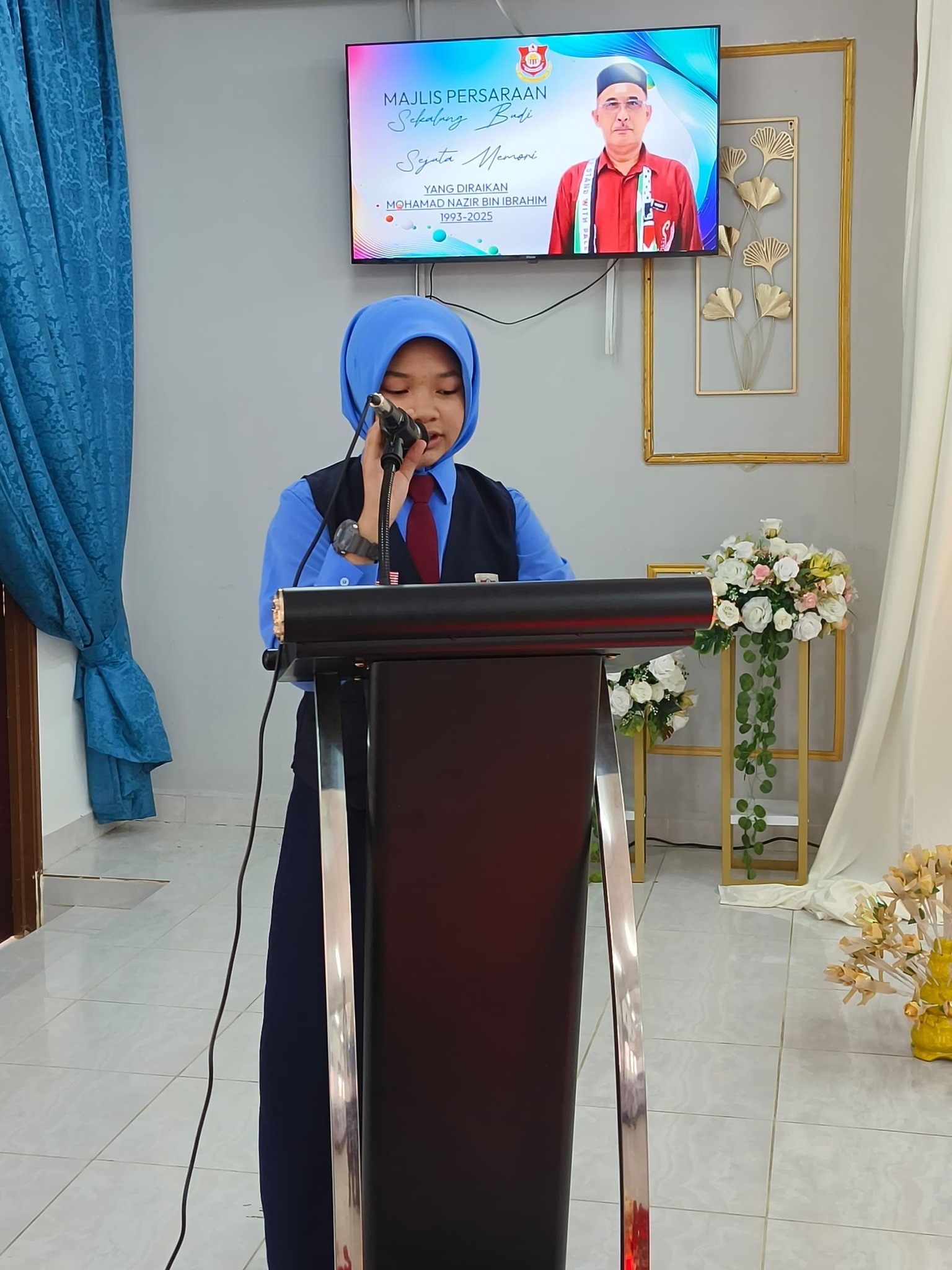 Pengacara majlis, Nur Athirah Fatiah Muhd Khairul Anuar, berjaya memimpin acara dengan penuh yakin, dibantu oleh Ketua Pengawas, Nur Alisha Sofia Shaiful Ahmad.