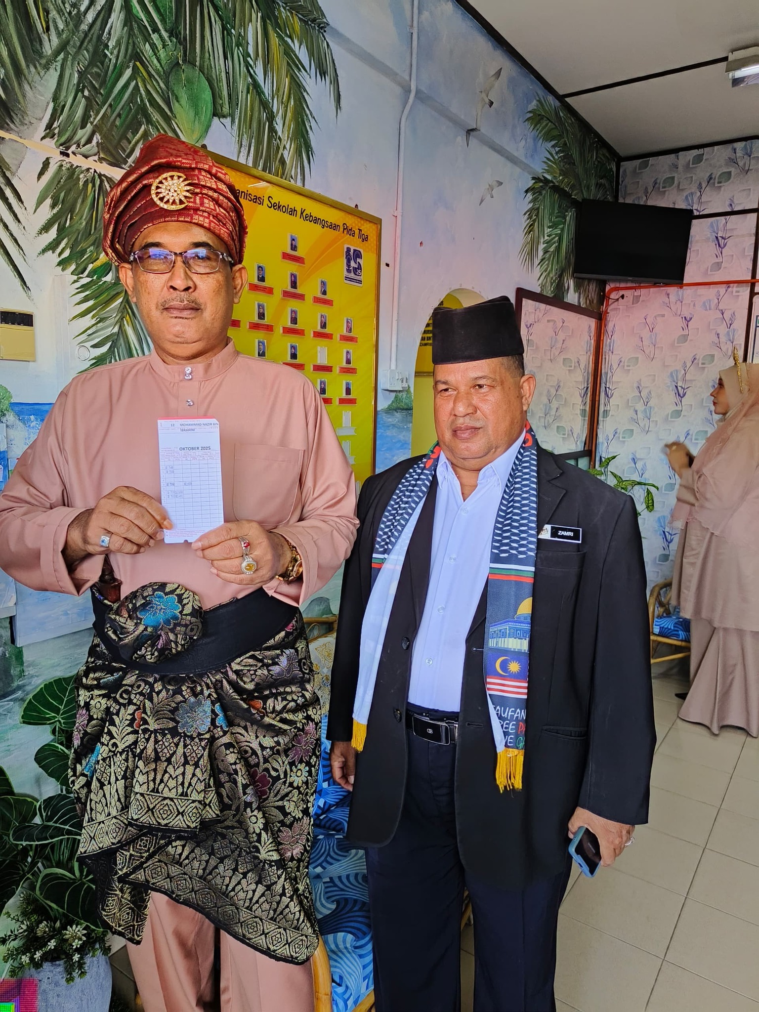 Cikgu Mohamad Nazir bersama Guru Besar, Zamri Abdul Majid.
