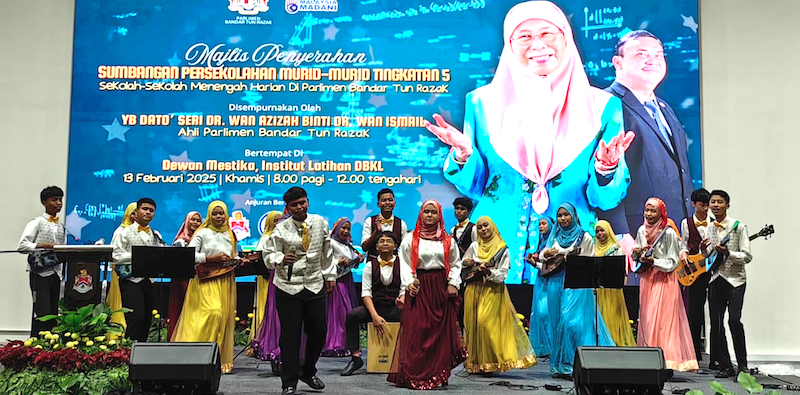 “Generasi yang berada di hadapan saya hari ini adalah harapan negara. Oleh itu, belajarlah dengan tekun, penuh keikhlasan dan tawaduk, serta sentiasa beradab,” ujar Ahli Parlimen Bandar Tun Razak, Dato Seri Dr. Wan Azizah Dr. Wan Ismail pada Majlis Penyerahan Sumbangan untuk Murid-murid Tingkatan 5 Sekolah-sekolah Menengah Harian di Parlimen Bandar Tun Razak 2025 yang berlangsung di Institut Latihan Dewan Bandaraya Kuala Lumpur pada 13 Februari 2025.