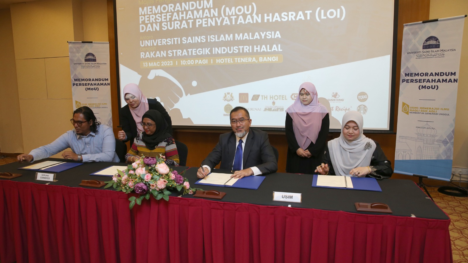 Bagi memperkukuh hubungan strategik ini, kerjasama yang diterajui Fakulti Syariah dan Undang-undang (FSU) USIM mengadakan Majlis Penghargaan dan Menandatangani Memorandum Persefahaman (MoU) dan Surat Hasrat (LoI) bersama dengan 12 rakan strategik Industri Halal bertempat di Hotel Tenera, Bangi, Selangor pada 13 Mac 2023.
