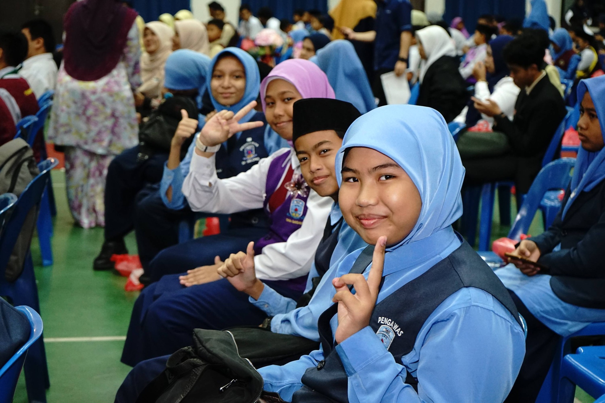 Murid sekolah yang hadir menunggu giliran menerima penghargaan.