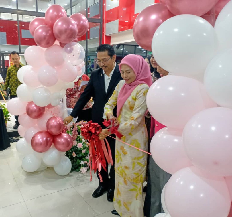 Dr Noraini Ahmad memotong reben bagi merasmikan Ruang Katarsis dan Sistem Halo Kaunselor Pusat Hal Ehwal Pelajar (HEP-UKM) di Bangunan Pusanika UKM.