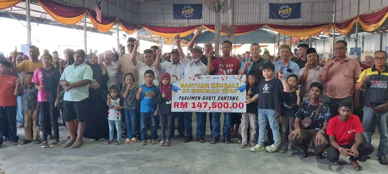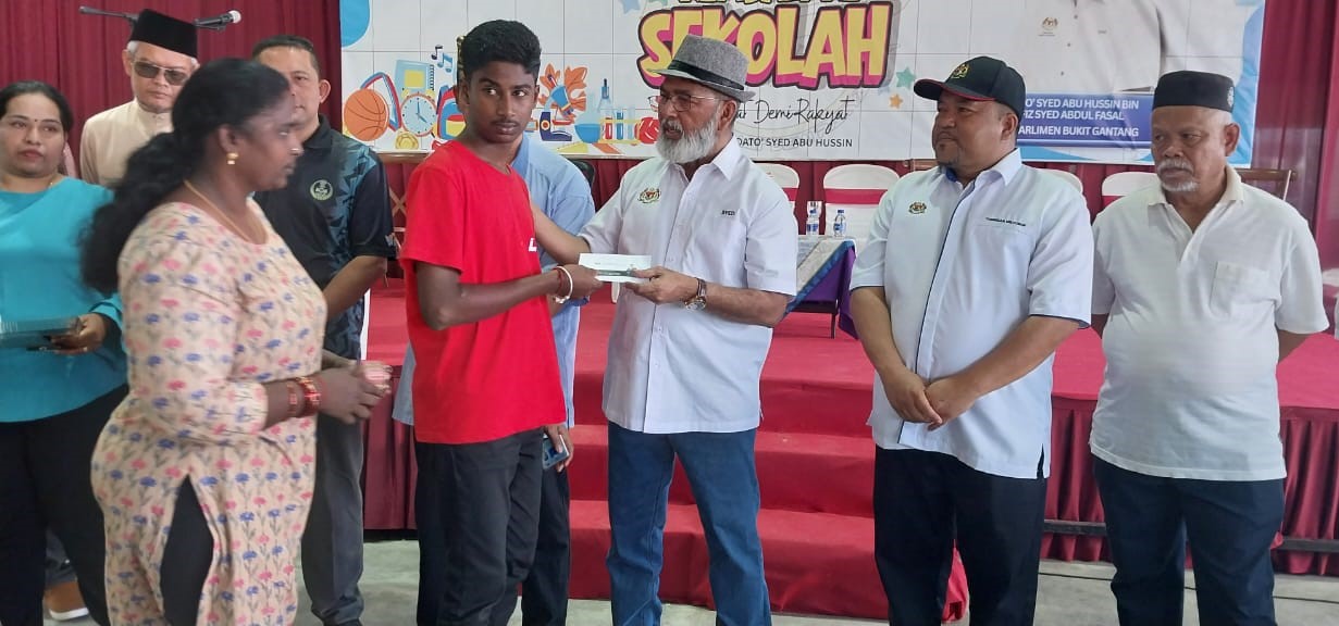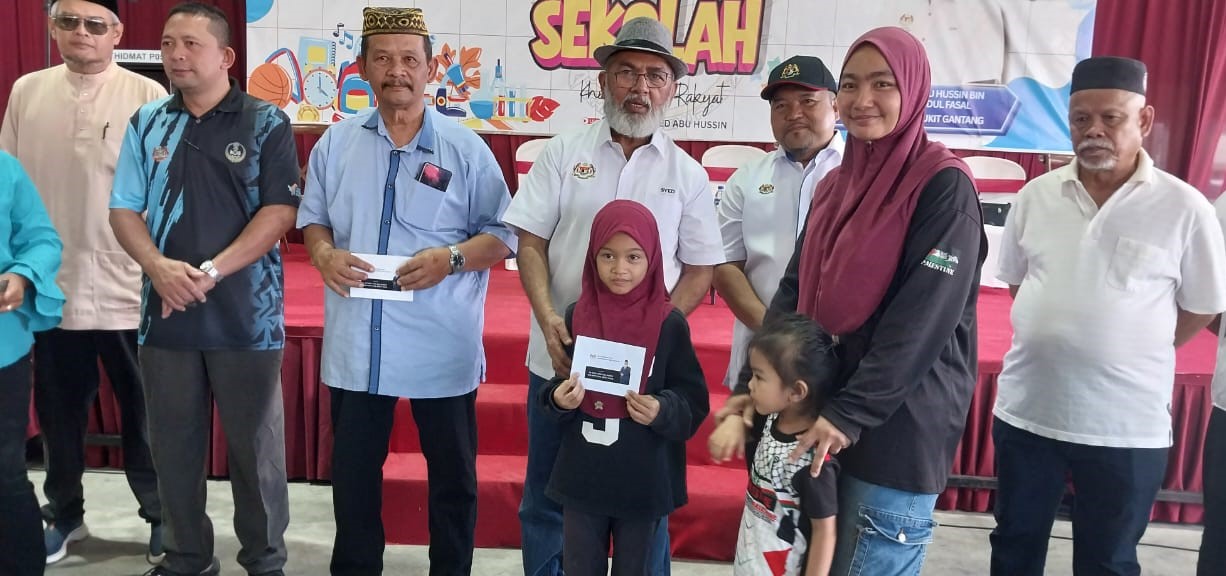Lebih 1,475 pelajar daripada keluarga kurang berkemampuan menerima wang tunai RM100 menerusi Program Bantuan Kembali ke Sekolah bersama Ahli Parlimen Bukit Gantang, Datuk Syed Abu Hussin Hafiz Syed Abdul Fasal di Pusat Khidmat Kampung Benggali.