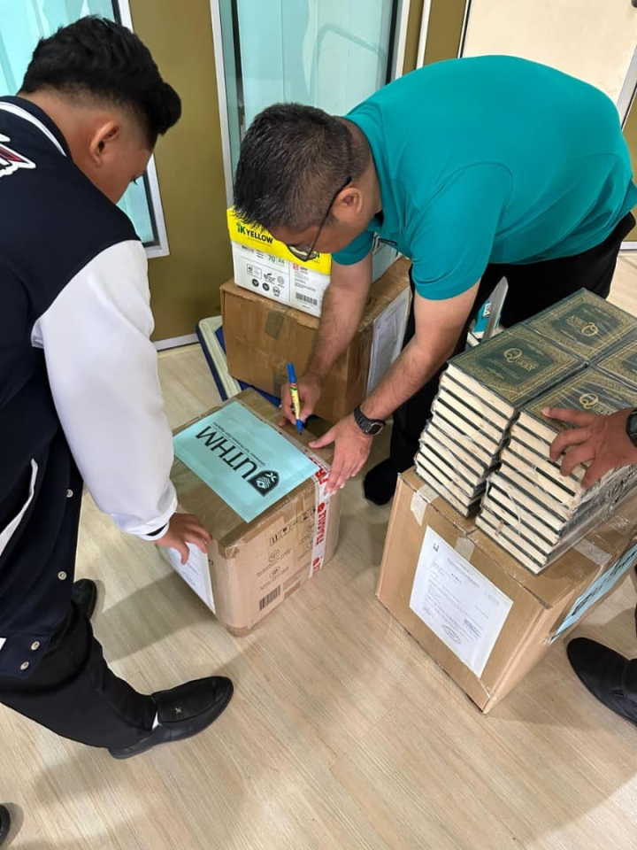 Selain itu, para pelajar tersebut turut membawa sajadah, al-Quran, tudung, jubah, kurta dan juga telekung yang dinfak oleh orang ramai dari Malaysia.