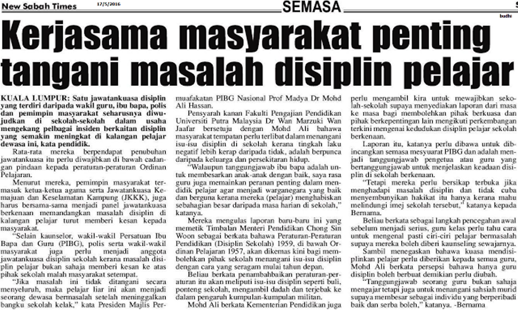 Gambar Hiasan... Peranan masyarakat cukup penting dalam usaha tangani masalah displin pelajar yang bukan menjadi tanggungjawab kementerian atau sekolah sahaja. - Kredit foto: New Sabah Times.