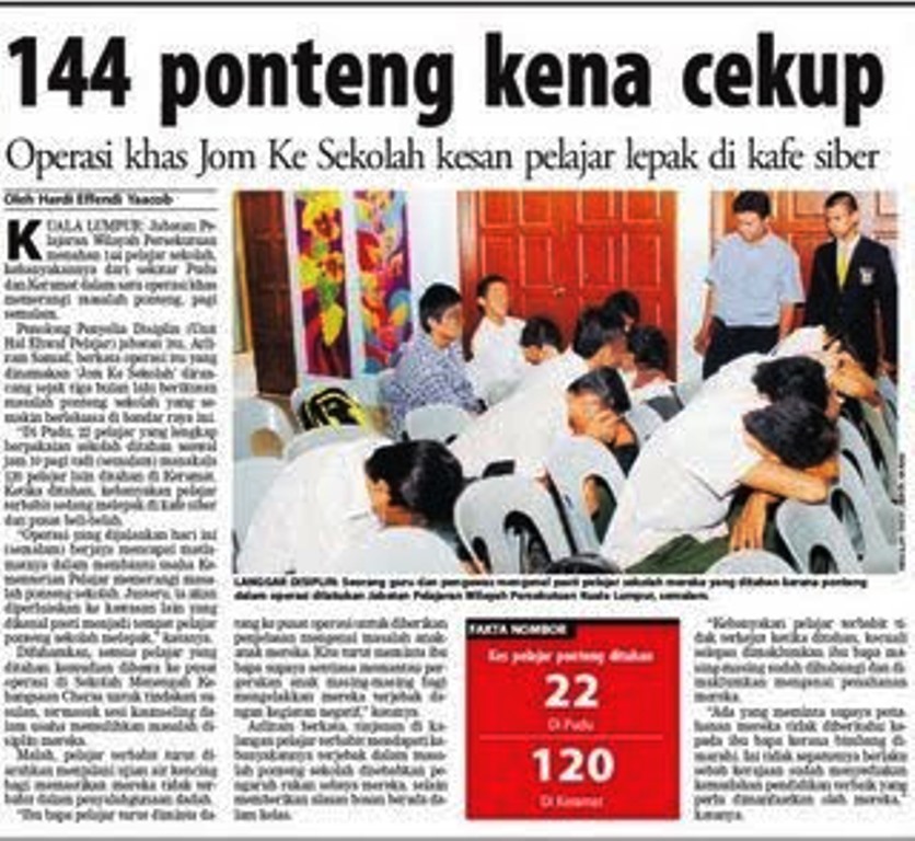 Gambar Hiasan... Laporan akhbar mengenai masalah ponteng sekolah dalam kalangan pelajar yang bagai tiada kesudahan dan perlu ditangani secara bijak. - Kredit foto: Anak Jati Penyu.