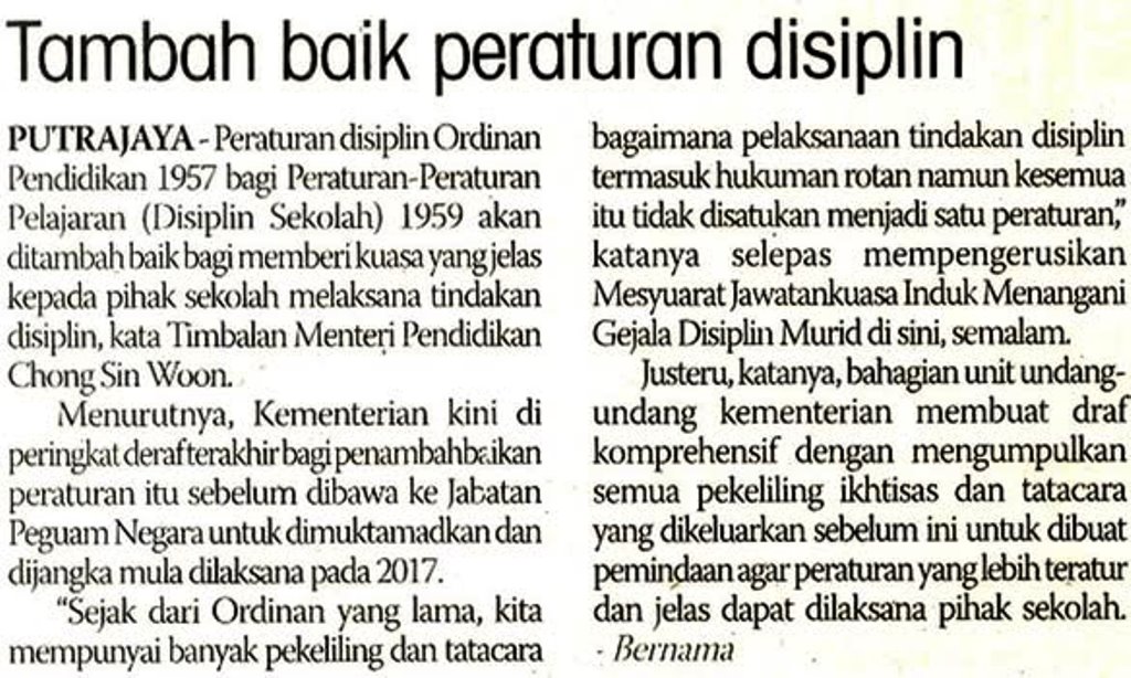 Gambar Hiasan... Usaha menambah baik peraturan displin pelajar antara usaha penting untuk menangani masalah displin dalam kalangan pelajar. - Kredit foto: Kementerian Pendidikan Malaysia.