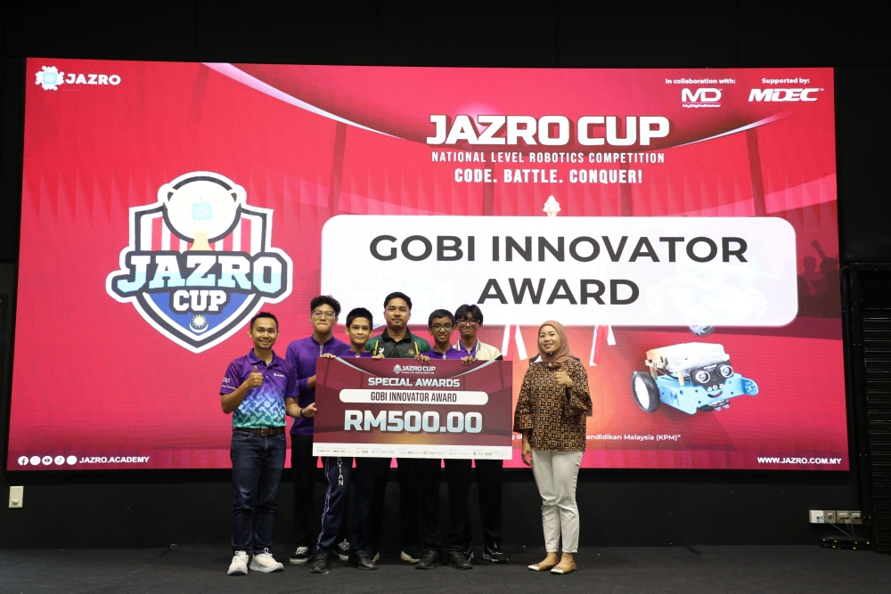 Jazro Robotic Academy mengumumkan bahawa gandingan dua pelajar SMK Seksyen 5 Wangsa Maju, Kuala Lumpur telah berjaya meraih Gobi Innovator Award, sebuah anugerah khas Piala Jazro 2025 peringkat kebangsaan. Coding Genius Award pula dimenangi pasukan sekolah SM Islam Hira’ & Maahad Tahfiz Al-Quran Hira’, Kuala Selangor. - KitaReporters