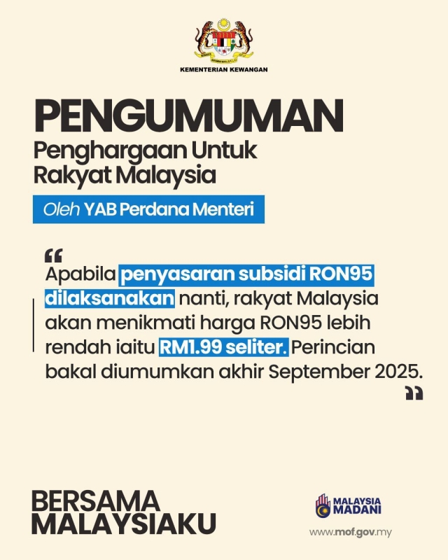 Penurunan harga petrol RON95 kepada RM1.99 seliter dan pengurangan kadar tarif elektrik kepada 85% pengguna domestik turut mengurangkan beban kos sara hidup.