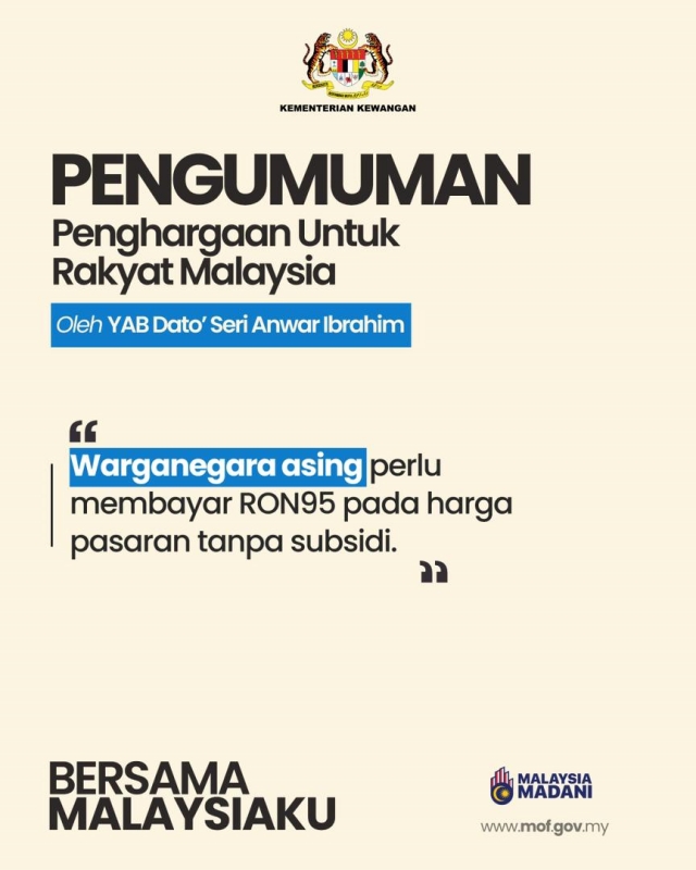 Di samping itu, kerajaan memperuntukkan RM500 juta bagi subsidi tol dan RM600 juta untuk program Jualan Rahmah Madani -- semuanya bertujuan memastikan rakyat tidak terbeban dengan kenaikan harga barangan dan perkhidmatan.